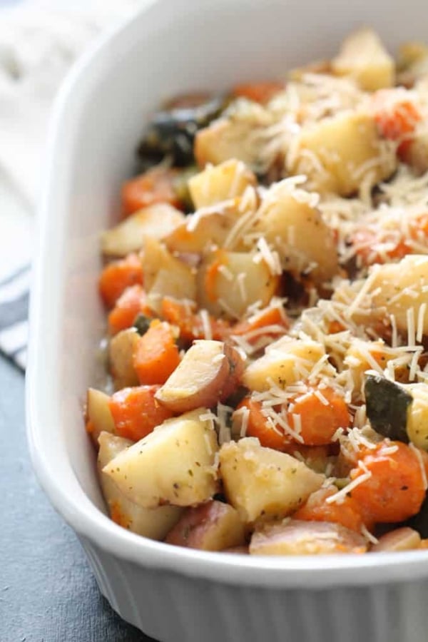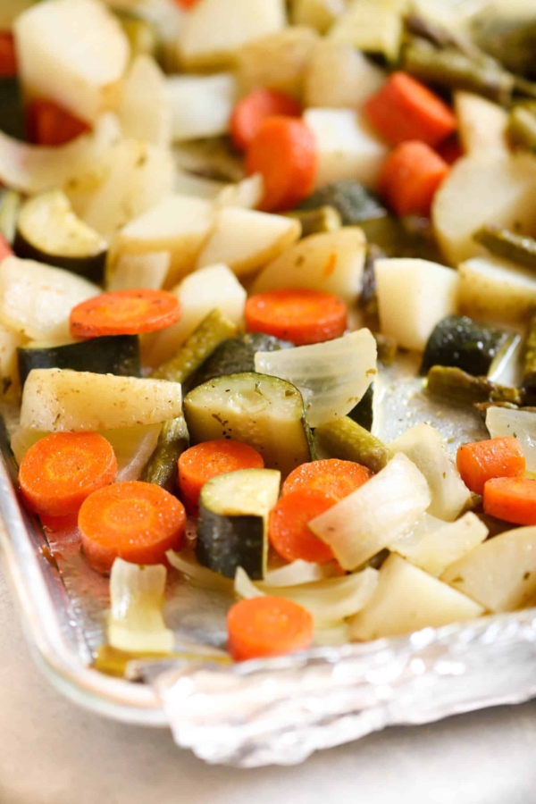 My favorite thing about this recipe is that I can easily toss everything together and throw it on a baking sheet and it is ready to go!
