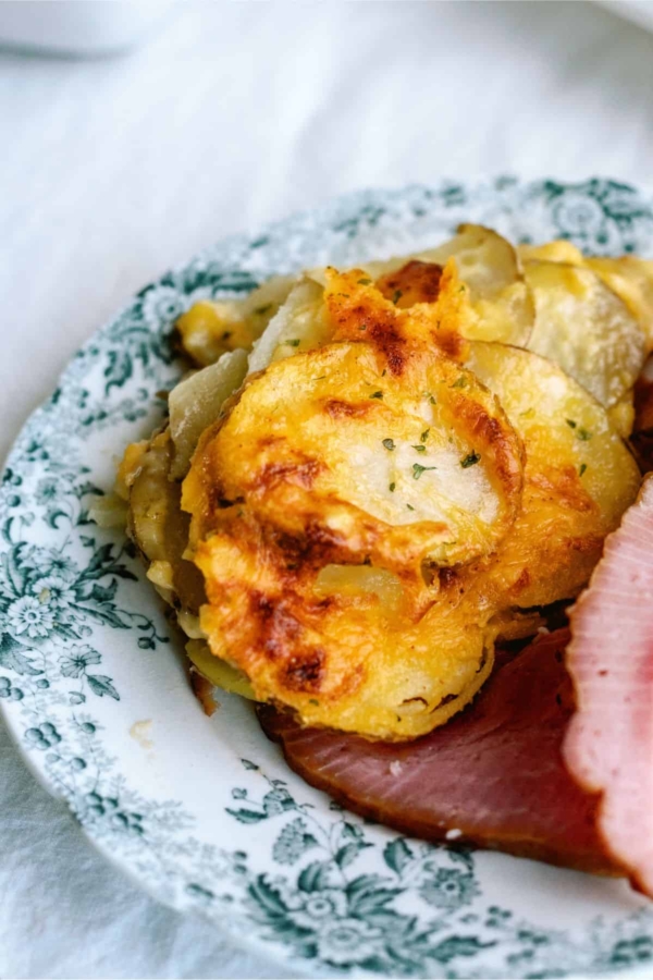 Sliced potatoes topped in a light cheesy sauce – this is the perfect side dish!