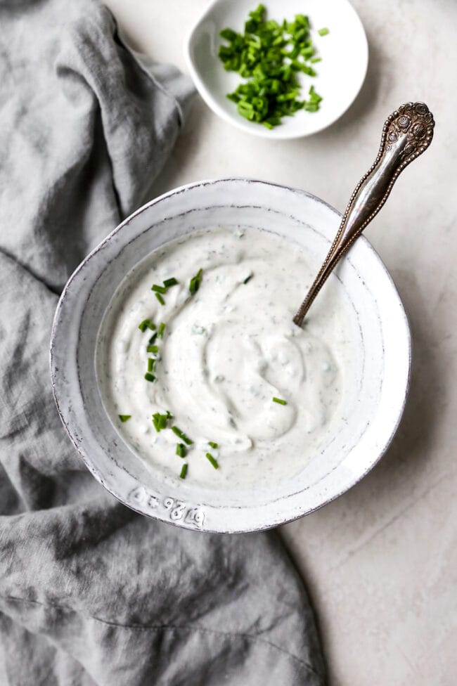 First, make the dressing. In a small bowl, combine the Greek yogurt, milk, lemon juice, chives, dill, garlic powder, onion powder, parsley, salt, and pepper. Whisk until smooth. Set aside.