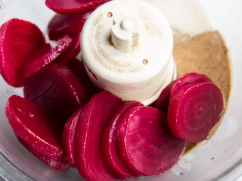 Combine the ground flax seeds with the beet juice and 1/4 cup of hot water in a small bowl, set aside until it thickens, 5 – 10 minutes.