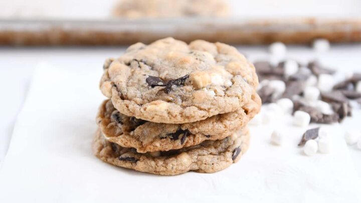 The graham crackers give such a delicious flavor to the cookie dough – you might need to exert all your self control so that some of it actually makes it in the pan.