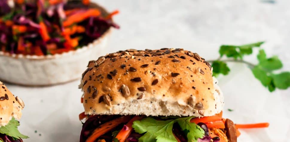Grilled Chicken Caesar Sandwiches with Tahini Slaw
