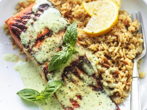 Baked Salmon with Pesto Cream Sauce