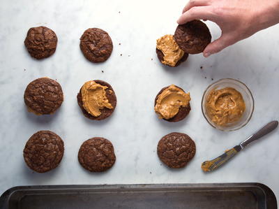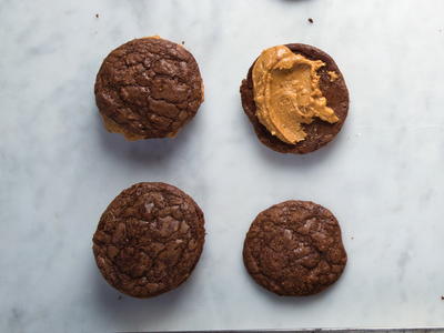 Chocolate Brownie Sandwich Cookies with Peanut Butter Filling