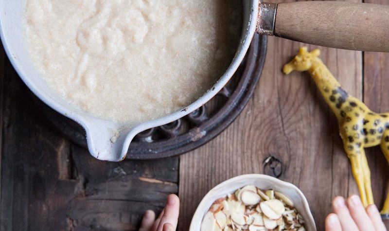 Farro Porridge with Brown Sugar Soaked Cherries and Almonds