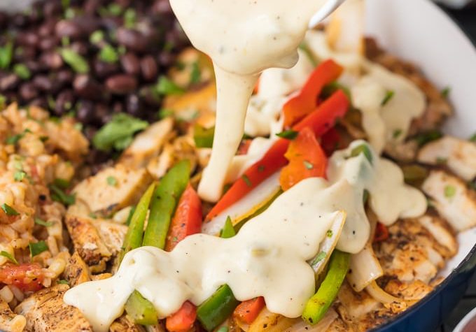 Queso Smothered Chicken Fajitas Recipe