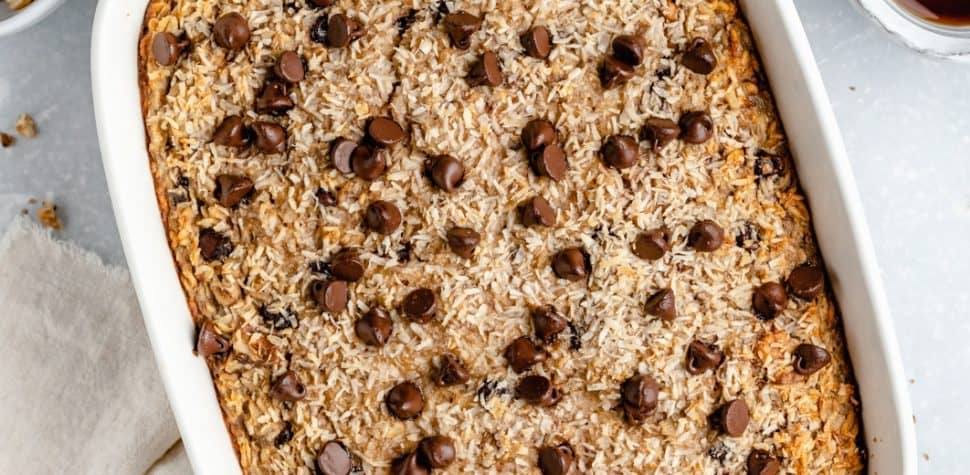 Chocolate Peanut Butter Banana Baked Oatmeal