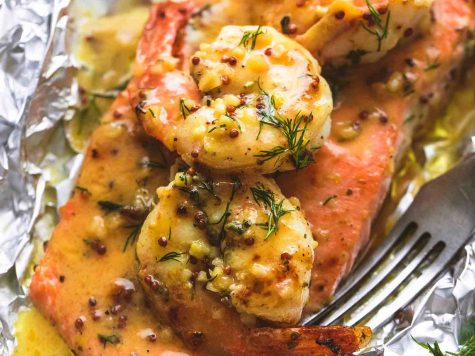 Garlic Dijon Shrimp and Salmon Foil Packs