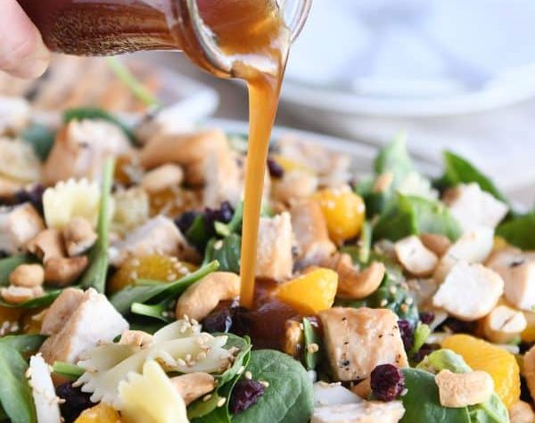 Mandarin Spinach Bowtie Pasta Salad with Teriyaki Dressing