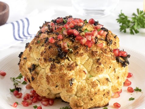 Whole Roasted Garlic and Herb Cauliflower with Pomegranate Seeds