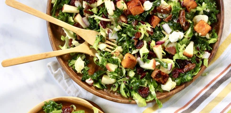 Kale and Brussels Sprouts Salad with a Maple Dijon Vinaigrette