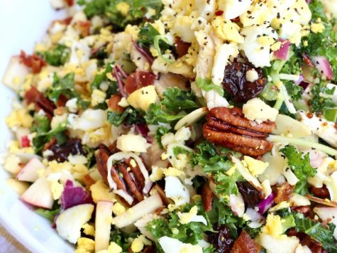 Newporter Salad {chopped kale + roasted chicken salad with champagne vinaigrette} By: TheDirtyGyro August 24, 2018 0 0 0 almonds