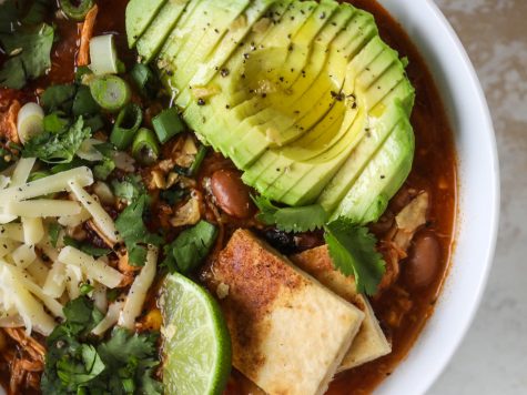 Chicken Taco Soup with Cheese Quesadilla Croutons.