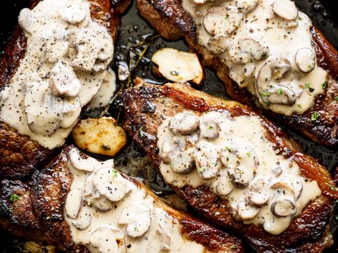 Pan Seared Garlic Butter Steak & Mushroom Cream Sauce