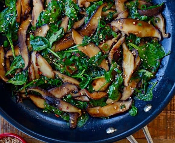 Sautéed Mushrooms and Spinach with Spicy Garlic Sauce