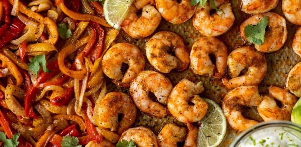 Lime Loaded Sheet Pan Shrimp Fajitas!