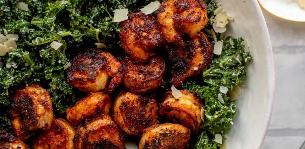 Shrimp Kale Caesar Salad – Blackened Shrimp Kale Caesar Salad