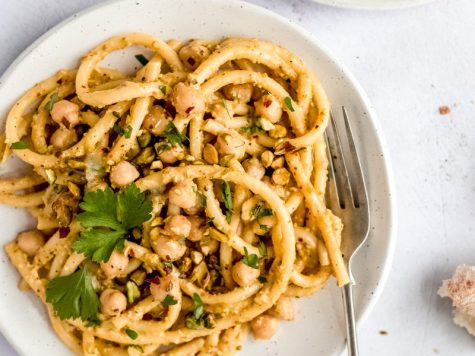 Brown Butter Pistachio Pesto Pasta with Chickpeas