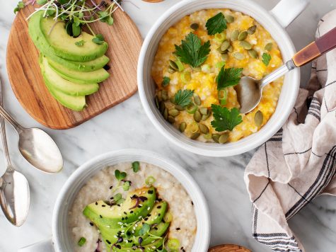 Chili Crisp Salmon Bowl with Avocado Mango Salsa.