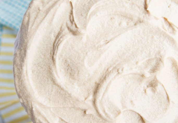 - Melt butter over medium heat then add in the brown sugar, cream, and salt. Stir over medium heat until sugar dissolves (about 3-4 minutes). Transfer warm caramel to a stand mixer (or you can use a medium bowl and a hand mixer) and add in the powdered sugar. Whip the frosting until well combined (smooth without any lumps of powdered sugar). Add a tablespoon or so of more cream if the frosting is too thick. Use frosting while its still warm to frost the cake.