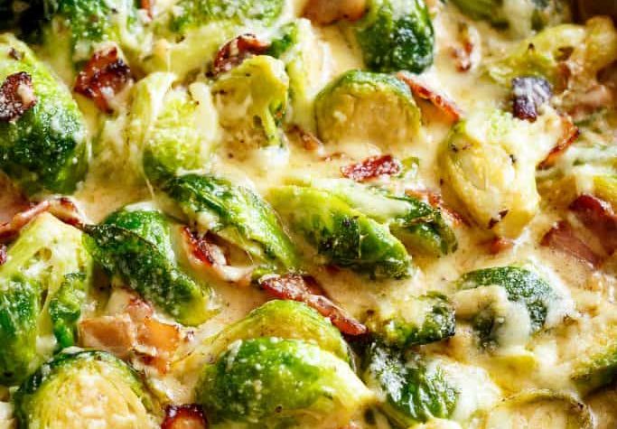 Creamy Garlic Parmesan Brussels Sprouts & Bacon Recipe