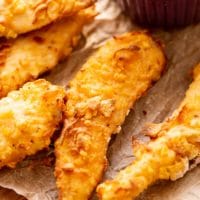 I like to use chicken breast for this recipe, you simply need to cut it into strips before breading it. You can also use chicken tenders if you can get them and they can be slightly ore expensive. Use chicken that i free run / organic if you can and one that hasn’t been raised on antibiotics.