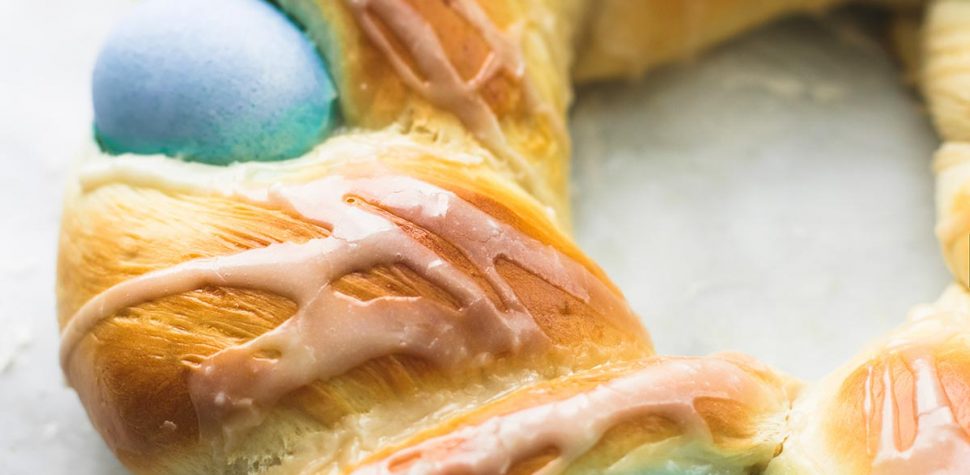 This almond ring Easter egg nest is SO simple to make with the help of Fleischmann’s® RapidRise™ Yeast. The dough is basic and requires minimal effort and rising time, but comes out perfectly soft, airy, and flaky with nutty almond undertones and a sweet cream cheese almond glaze that will make you swoon. I honestly can’t think of a better way to kick off Spring and celebrate Easter. This Italian bread recipe is really for anyone to enjoy at any time of year, especially in spring!