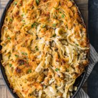 There are a lot of recipes for chicken tetrazzini out there, but a lot use shortcuts, like using mushroom soup, to make it. Newsflash! This is not a difficult dish to make from scratch, and when you do, it tastes so much better! It only takes around 15 minutes to prep this dish, and then you just pop it in the oven and let it do it’s thing. So skip the shortcuts and make this family meal from scratch!