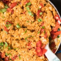 You can serve as is or alongside some tacos or enchiladas, or pork and fish dishes. It’s even great as a main dish, digging your way in with tortilla chips. Either way, you’ll loved the change from our usual plain ol rice!