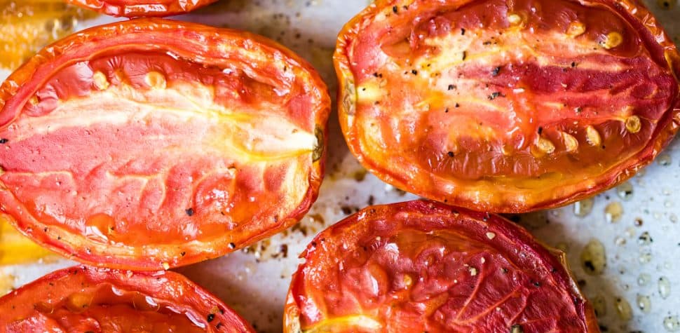 - Garlic: Let’s not forget about how delicious roasted garlic is. The sweet, lick your finger good flavor is essential to this recipe — and it’s easy to roast right alongside the tomatoes.