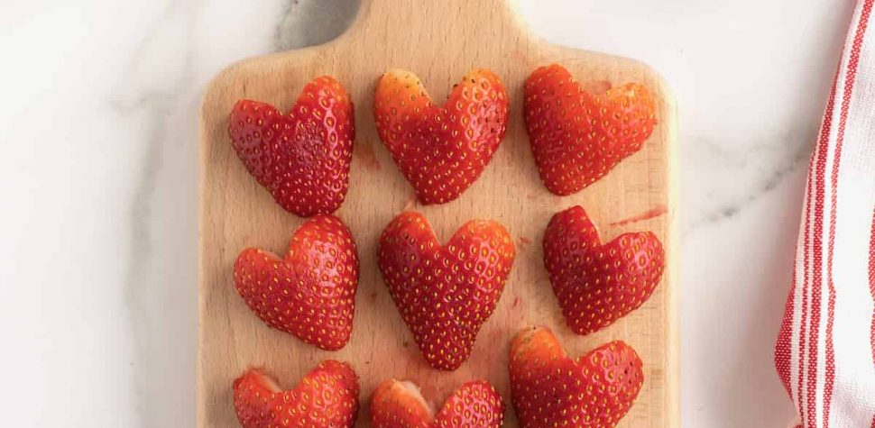 Doesn’t have to be Valentine’s Day to show some food love! Heart Shaped Strawberries add a sweet touch to any meal, special occasion or not! I add heart slices to my kids’ oatmeal or granola, and place halved heart strawberries on snack boards. It’s such a cute touch! And it takes so little effort!