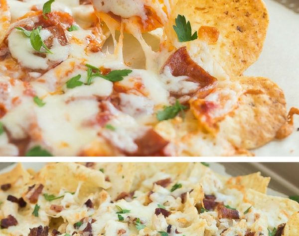 I’ll show you how to make the best nachos and 3 different ways to do them up! Nachos are a crowd favourite every Super Bowl, game day or family movie night — an easy appetizer or easy dinner that everyone loves! Skip the regular ground beef in favour of these Pepperoni Pizza, Philly Cheesesteak, or Bacon Chicken Alfredo nachos.