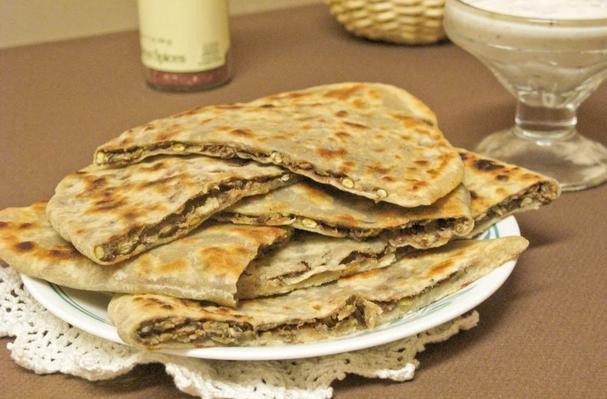 Ingredients: 1 1/2 cups all purpose flour,1 tablespoon finely chopped cilantro,1/2 teaspoon cumin powder,1/2 cup warm water – or more or less to make a pliable dough,3/4 cup cooked lentils (I used ¼C dried french green lentils – use any 1 tablespoon finely chopped red onion,salt to taste,1 teaspoon zatar spice blend (see description and alternatives above)