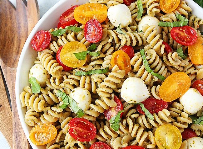 Speaking of good food, you guys are going to LOVE this Pesto Pasta Salad. It is the perfect summer pasta salad recipe and guess what, you only need FIVE ingredients! During the summer, we are all about easy meals because we are too busy having fun and this salad is super easy and SO delicious!