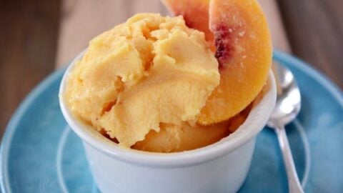 - Scoop into a freezer-safe container and freeze until set up, 2-3 hours (or longer). Before serving, let the sorbet sit at room temp for 15 minutes to soften slightly. Scoop into bowls (delicious served with a few thin and crispy lemon cookies) OR scoop into glasses with ginger ale for a fizzy float drink.