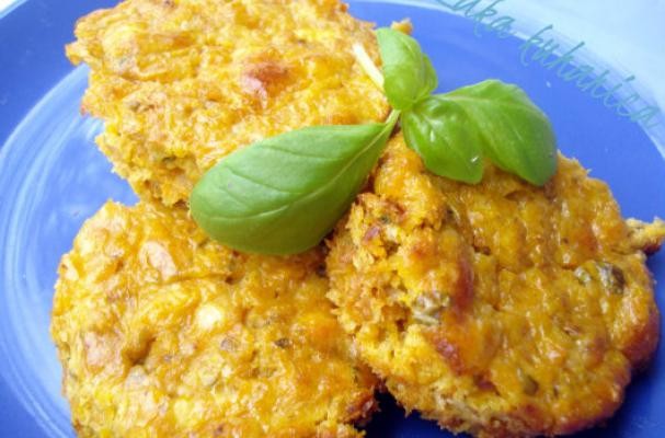 Ingredients: 600 g pumpkin, cleaned,2 Tbs olive oil,120 g feta cheese, crumbled,120 g mozzarella, torn into small pieces,2 eggs,2 tsp dried oregano,4 Tbs parsley, chopped,4 cloves garlic, minced