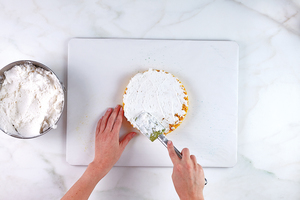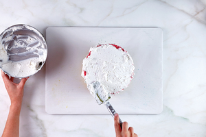 Spread one last layer of frosting over the top layer, making sure to reach the edges.