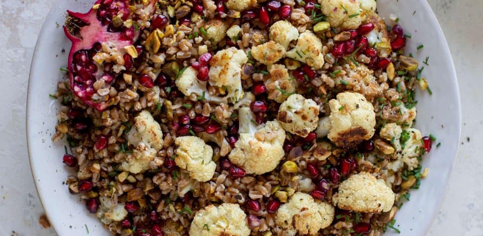 The post Roasted Cauliflower Farro with Pomegranate and Pistachios. appeared first on How Sweet Eats.