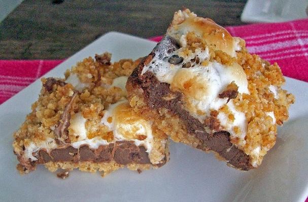 - Sprinkle with mini marshmallows; scatter bits of remaining graham cracker crust over marshmallows.