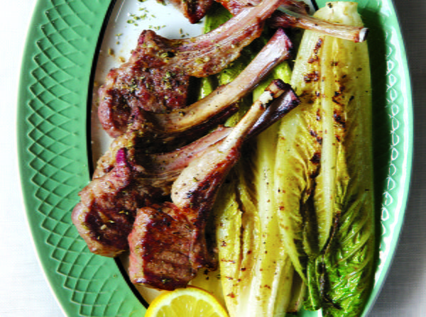 Remove fat and sinew from lamb, cut into 2-inch chunks like large stew meat. Combine olive oil, juice of 2 lemons, wine, garlic, salt, pepper, oregano, bay leaves, basil thyme and rosemary in large non-reactant kettle and bring to boil, drop mushrooms into boiling marinade and cook, stirring to coat about 1 minute. Drop in onions and green pepper, stir to coat, cook about 1 minute, remove kettle from heat, let stand uncovered til cool. Add meat chunks, stir to coat, add tomatoes, cover tightly and refrigerate 6 to 24 hours (flavors are better with longer marination). Thread ingredients alternately on skewers, salt and pepper lightly if desired. Grill on barbecue, turning frequently and basting with marinade til meat is brown on outside and slightly pink in middle. Slip off skewers using a fork and onto plates, serve immediately. 4-6 servings. Good with crusty bread, saffron-laced rice pilaf, black Green olives, red wine and anything from fruit to pastry for dessert, also good eaten by hand in pockets of warm pita bread.