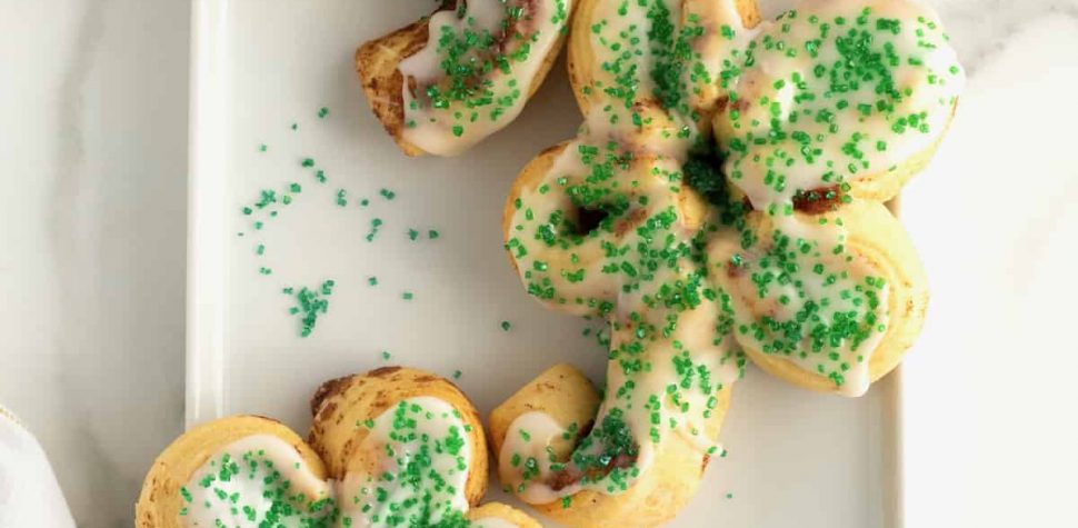 Make your holiday magical and delicious with these St. Patrick’s Day Cinnamon Rolls. Turn store-bought cinnamon rolls into lucky four leaf clovers for an easy treat that’s sure to please all your lads and lasses!