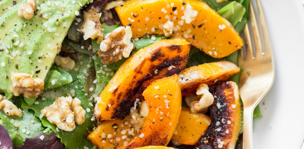 I had a lot of requests to post this warm salad recipe after sharing it on Insta Stories and mentioning it in my most recent Things I’m Loving Lately roundup. Well, ask and you shall receive! I hope you love this cozy salad as much as I do. It’s a great way to use up any veggies lurking in the back of your fridge—I like to toss those on the pan to roast with a big batch of squash so I have plenty of leftovers for the next few days. The extra veggies and dressing make for a really quick reheat-and-serve lunch. If you’d like to pack this for a work- or school-day meal and still enjoy the “warm” aspect, you could store the squash separately and heat it up in the microwave before serving. Just a thought! I’d love to hear what you think if you try it out.